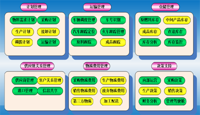 涵盖原材料进厂、中间产品倒运、产成品出厂、码头港口中转及发货、卸货等全过程的物流管理和订单跟踪。