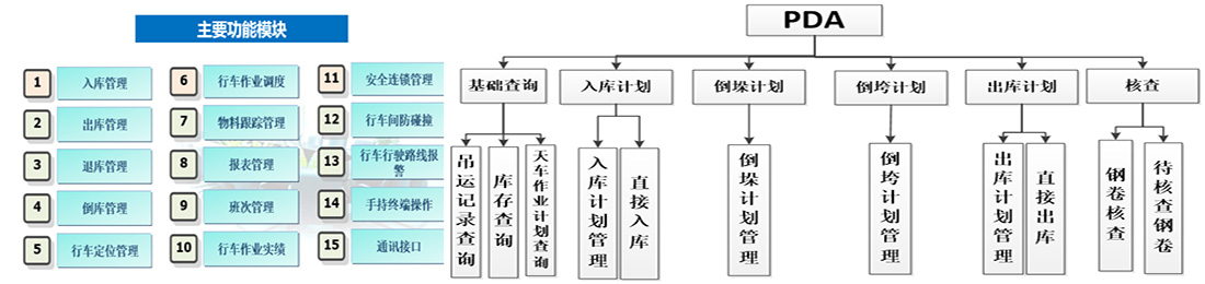 智能库房系统基于现代库房管理的理念,利用有效的自动化和信息化管理手段,构建智能库房管理系统,实现对产品入出库、行车作业调度等全面跟踪,实现库房精益化管理,降低运营成本,提高仓储管理水平和物流效率。同时,通过对天车的作业远程监控,以及作业命令和作业实绩的实时同步传输,并与MES、L2等系统集成,提高库房管理效率和准确性,达到物流与信息流的统一。